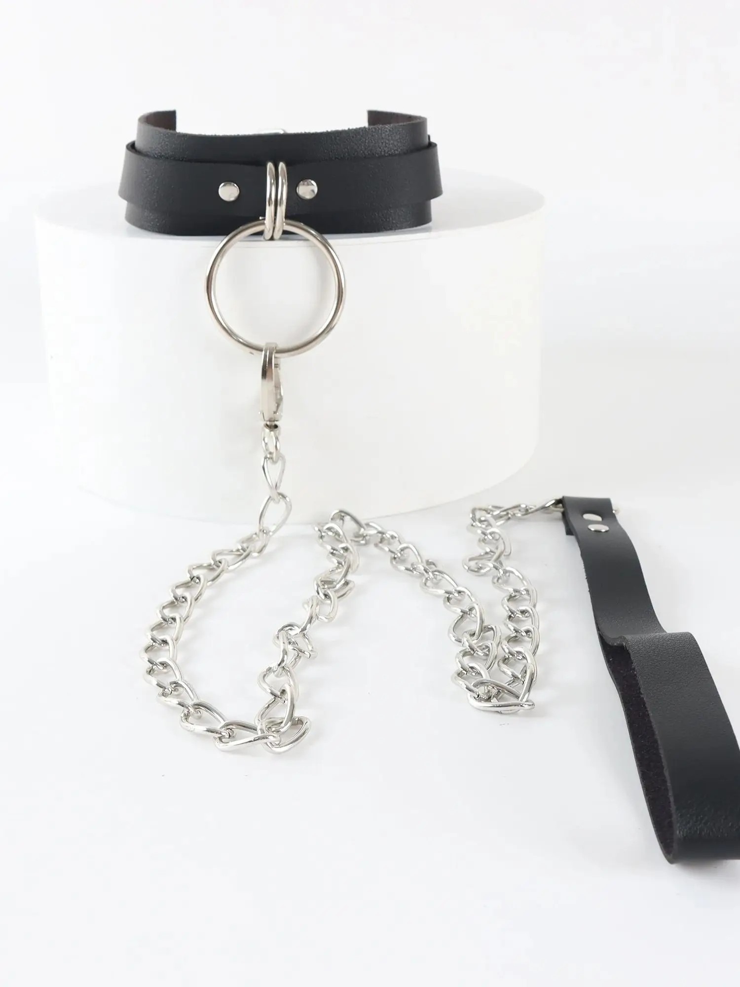 Leather Slave BDSM Collar with Leash Adult Games Sex Bondage Restraint Neck Cuffs Fetish Collar Erotic Sex Toys for Women Men € 35,00