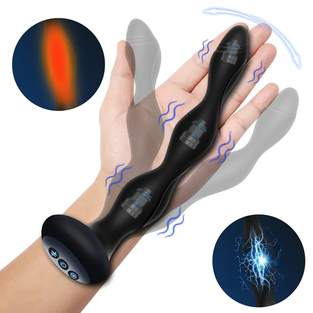 Home Vibrators Men's vibrators Bendable Electric Pulse Heating Prostate Massager Sex Toys 3-in-1 Anal Beads Butt Plug for Men Women Couple Adult Toys
