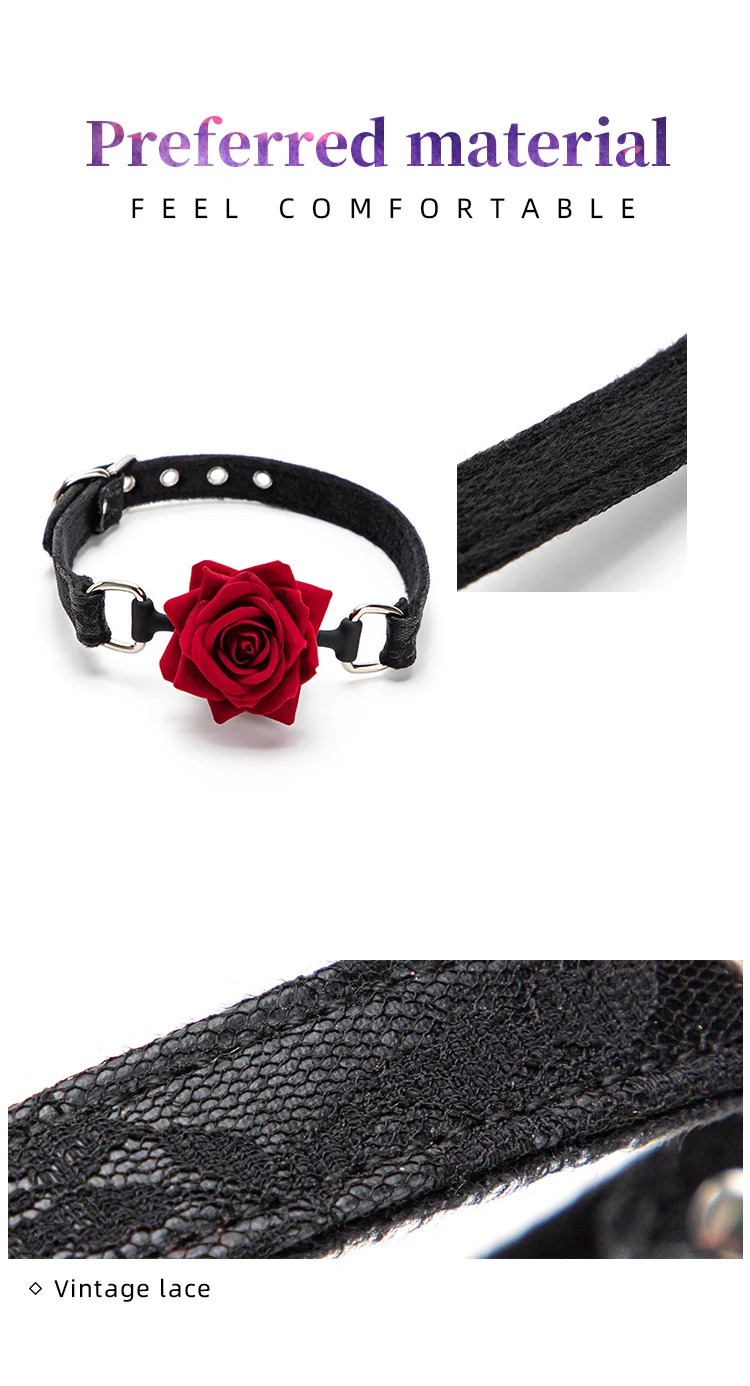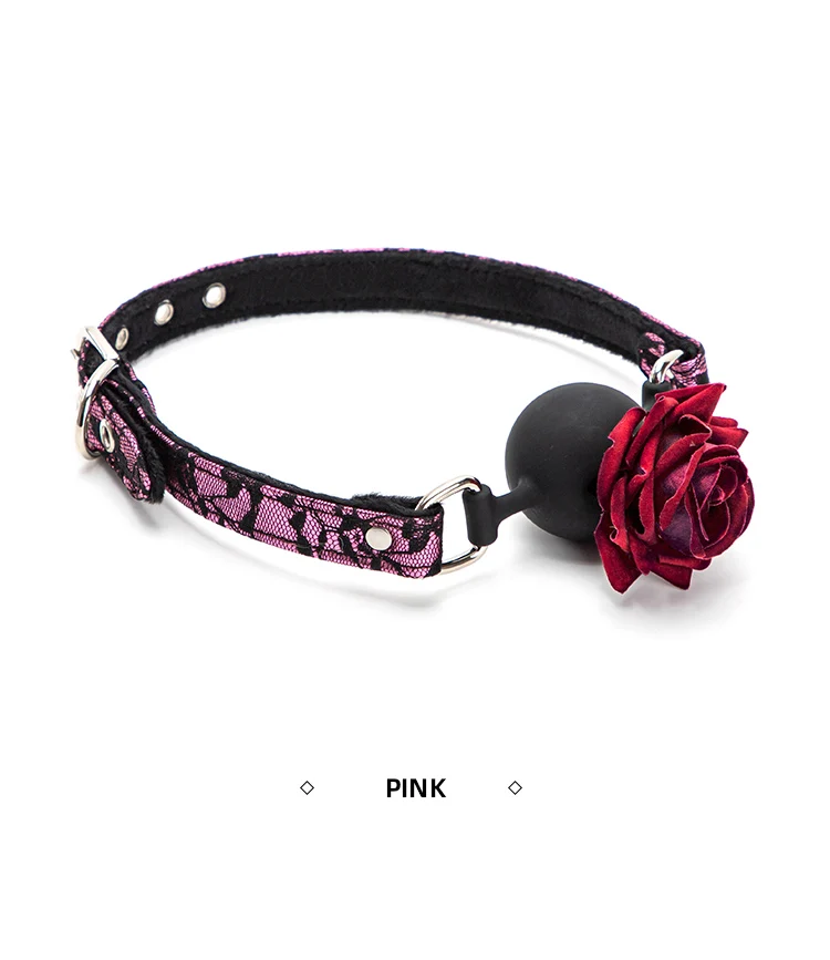 Home BDSM Soft Silicone Ball Gag Bondage Lace Rose Flower Open Mouth Gags Oral Fixation Adult Sex Toys For Couples BDSM Game