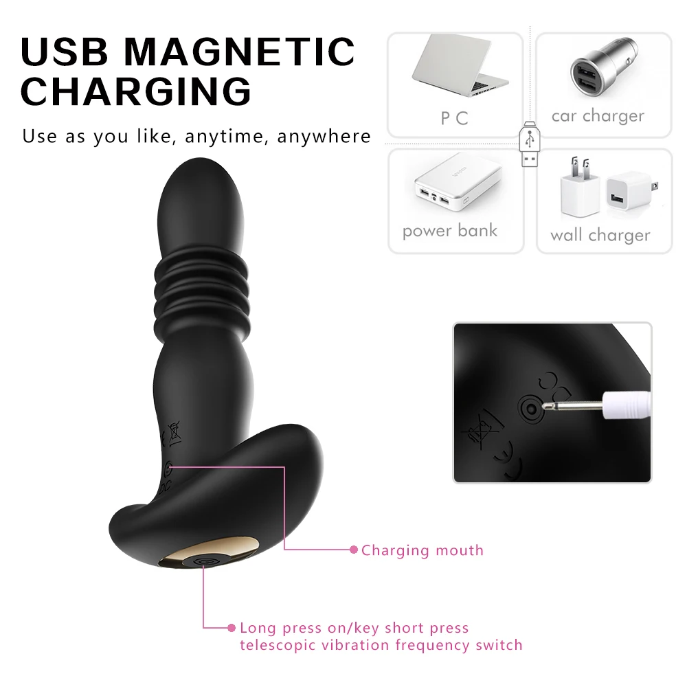 Telescopic Dildo Anal Vibrator Male Prostate Massager Delay Ejaculation Penis Ring Butt Plug Sex Toys for Men Gay Masturb € 43,00