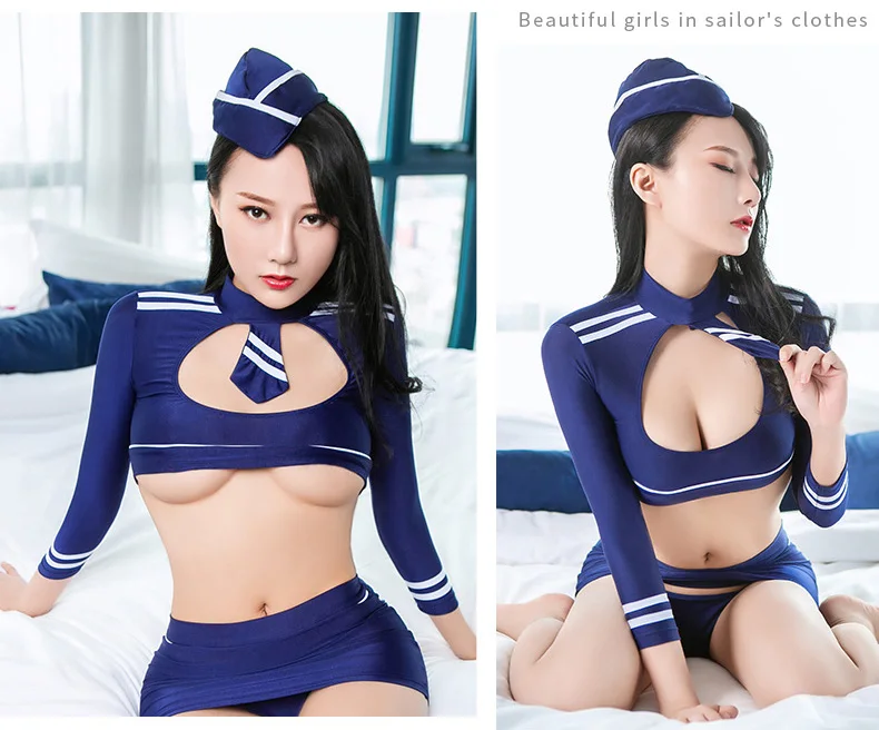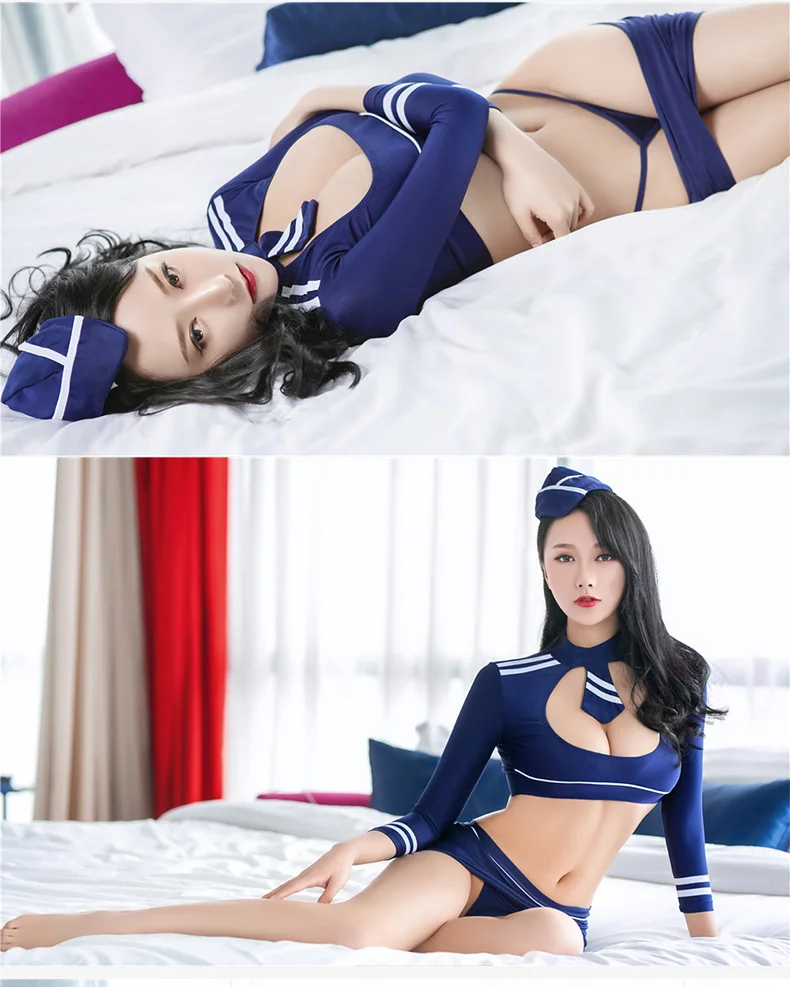 Home Role-playing costumes Hot Sexy Stewardess Cosplay Uniform Temptation Open Bra Flight Attendant Costume Erotic Lingerie Women Sex Role Play Game Outfit