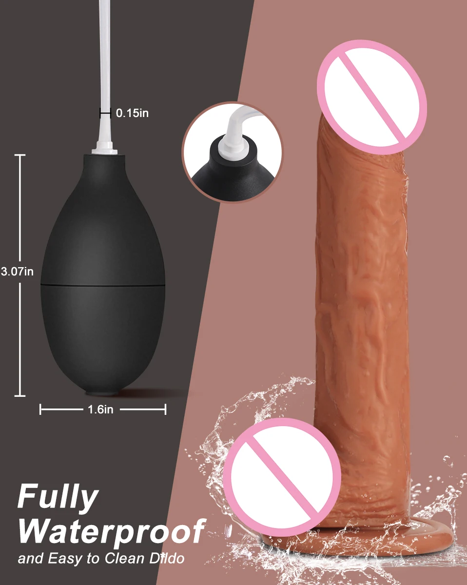 •We are committed to developing high quality dildos and this squirting dildo is one of our carefully crafted products. At 8.07 inches in length and 1.6 inches in diameter at the widest point of the dildo, this size will suit most people and its thick texture will make more people feel safe and satisfied. We have optimised the air bladder for water by increasing the capacity from 35ML to 50ML, which means you can use 3-5 squirts when full.