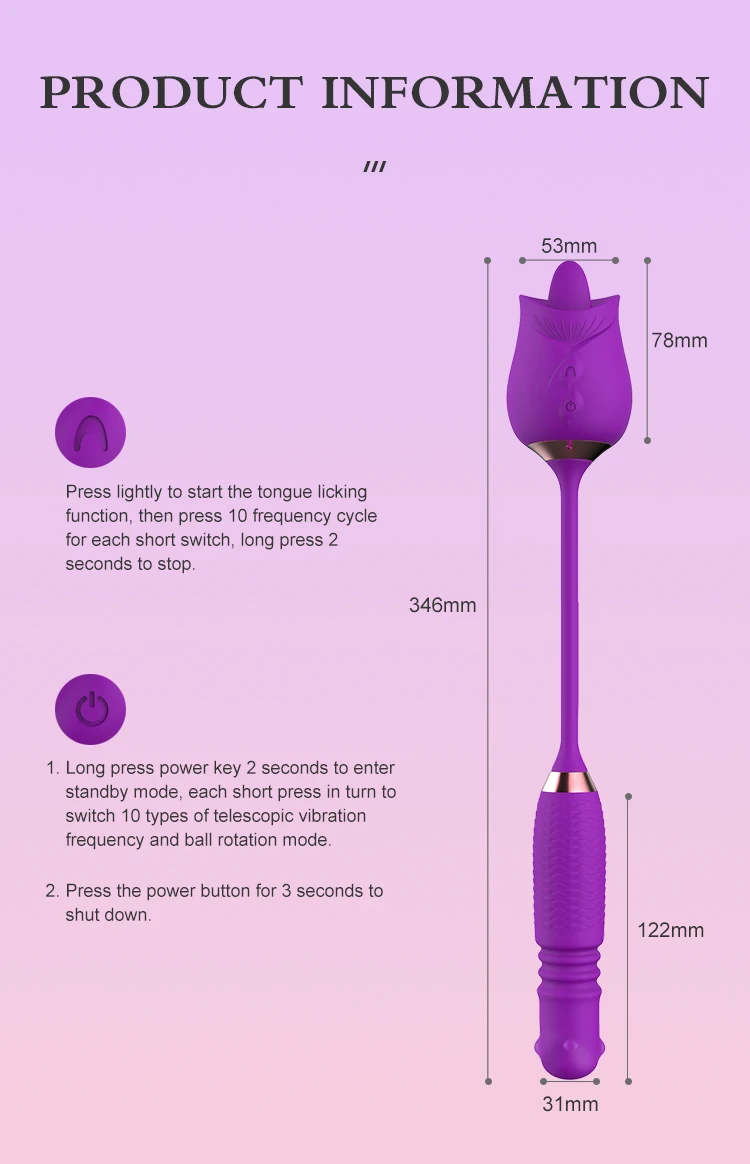 • 10 tongue licking vibrating modes