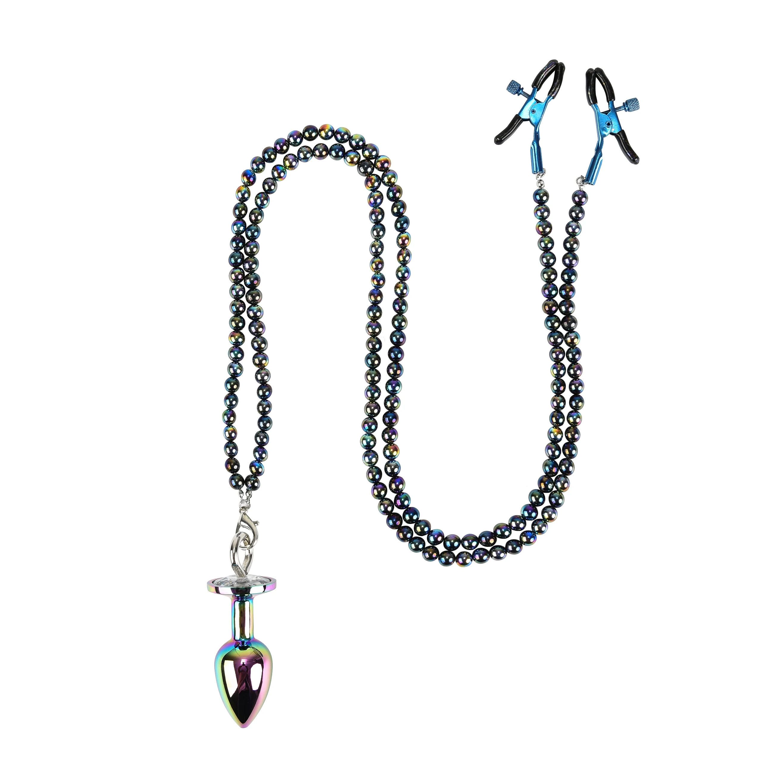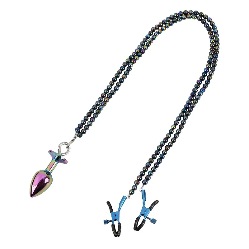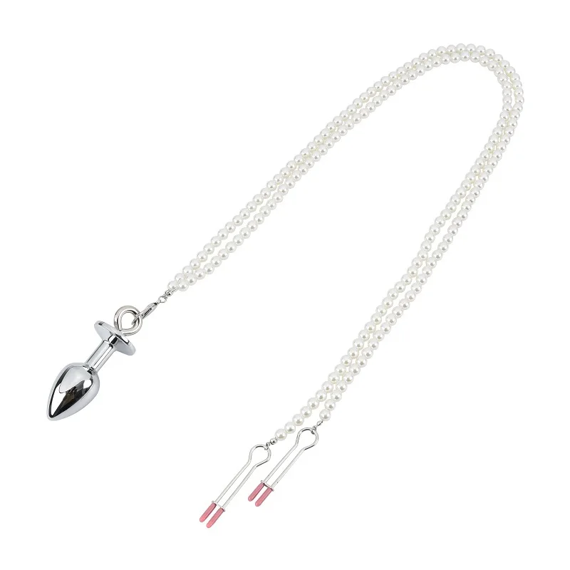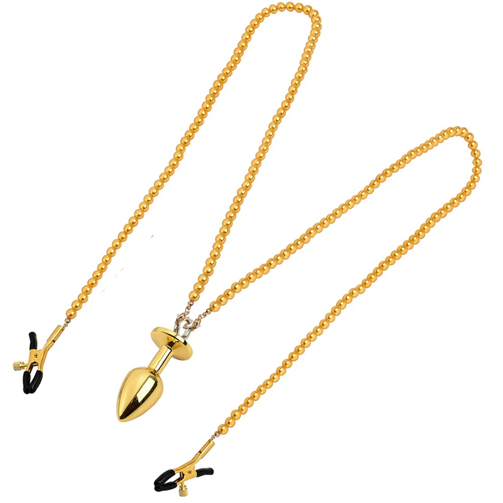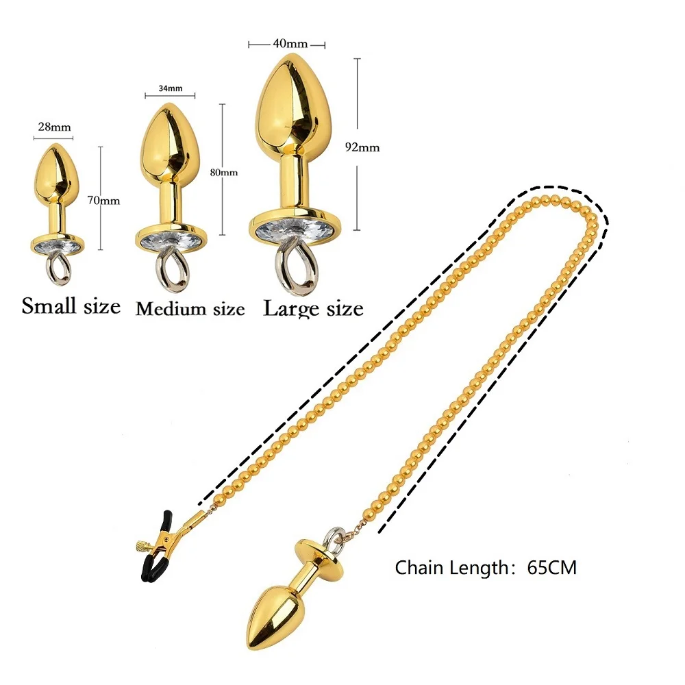 Small Medium Large Anal Beads Butt plug Pearl Nipple Clamps Set With Chain Metal Breast Clip Bondage Slave Couple Game Sex Toy
