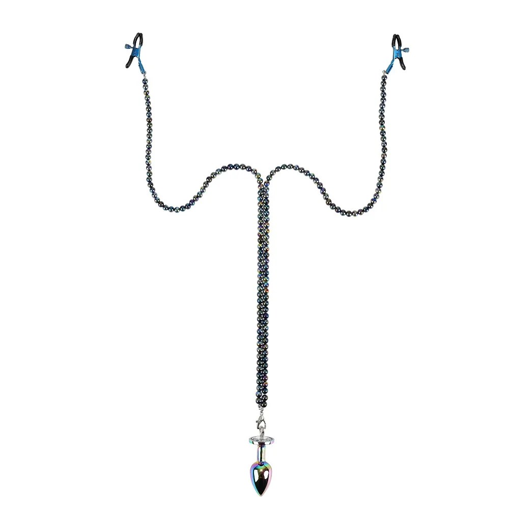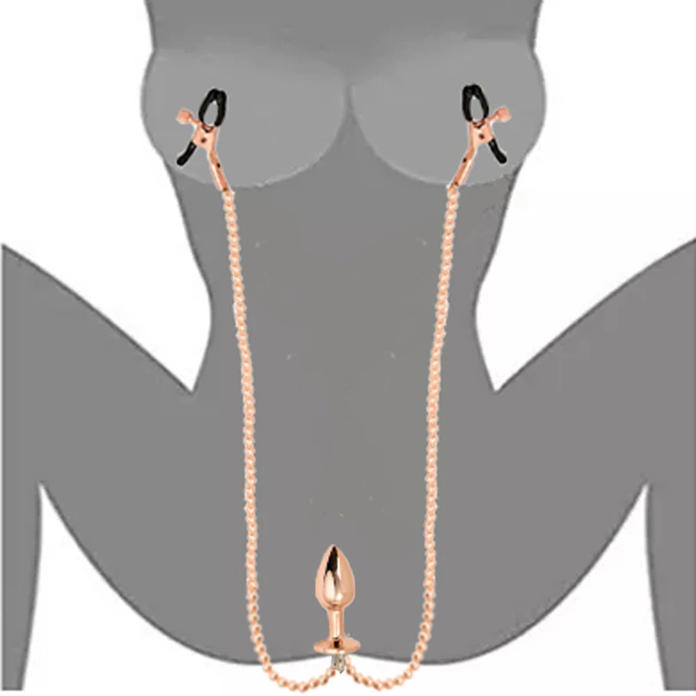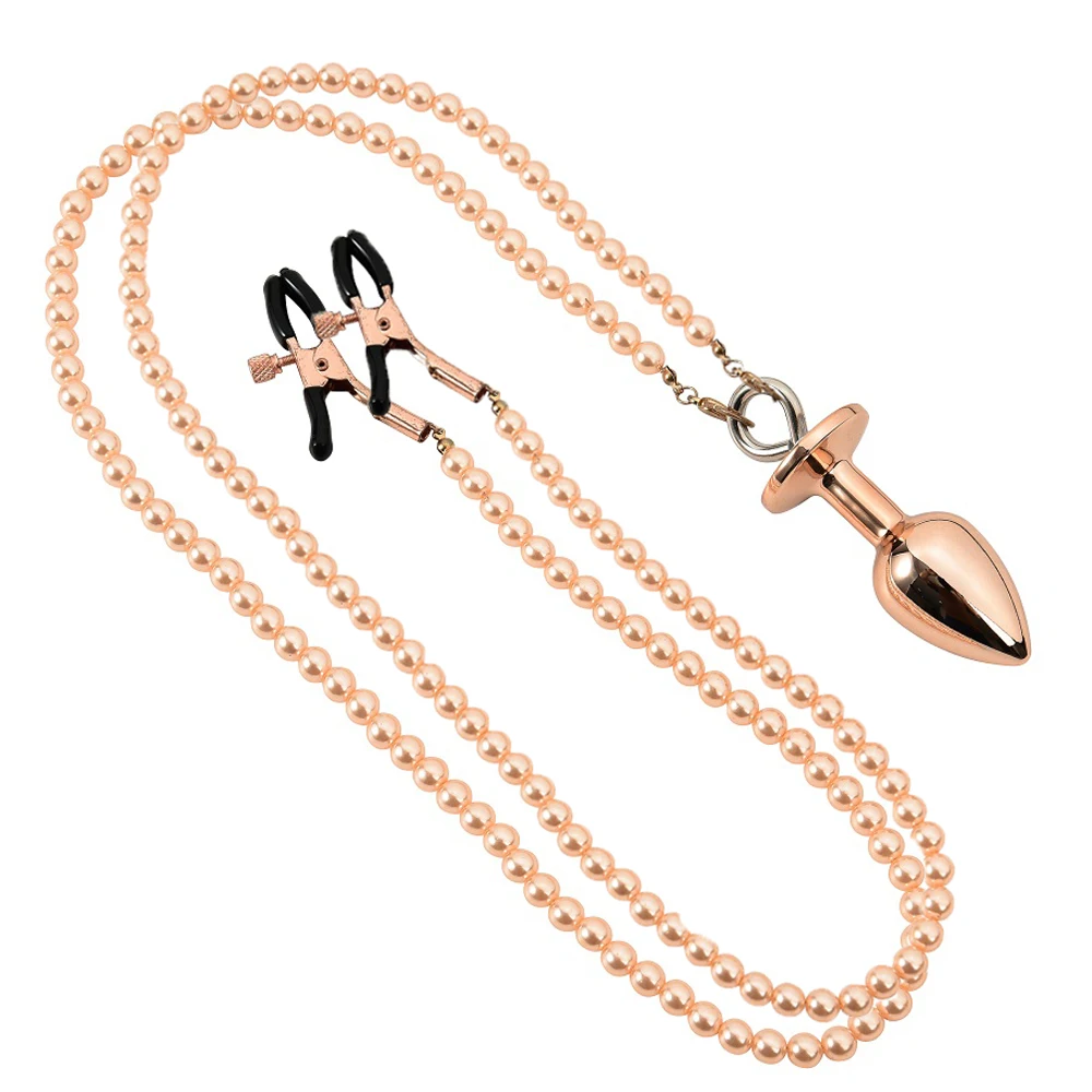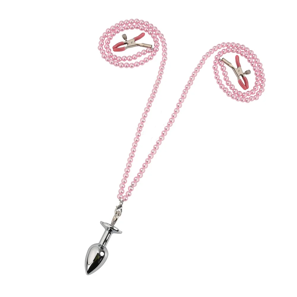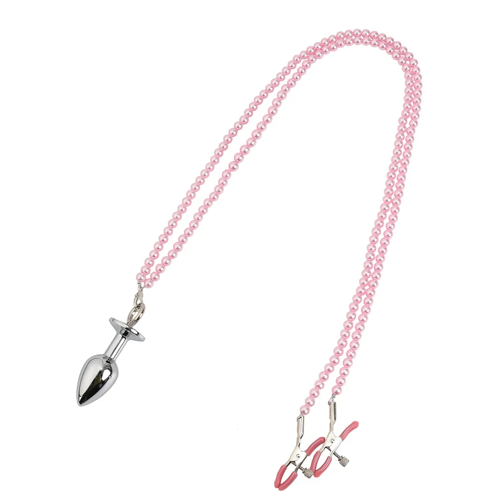 Home BDSM Small Medium Large Anal Beads Butt plug Pearl Nipple Clamps Set With Chain Metal Breast Clip Bondage Slave Couple Game Sex Toy