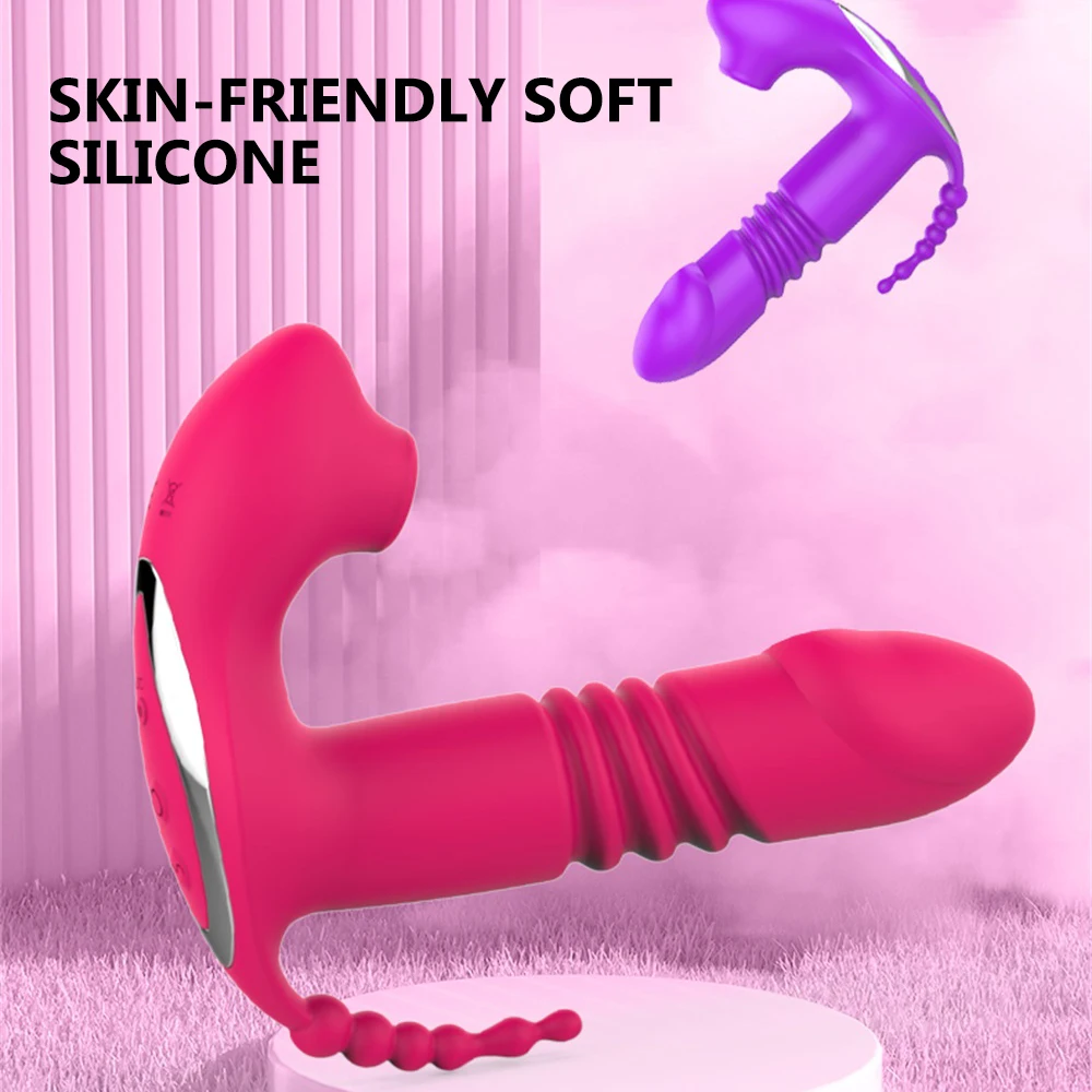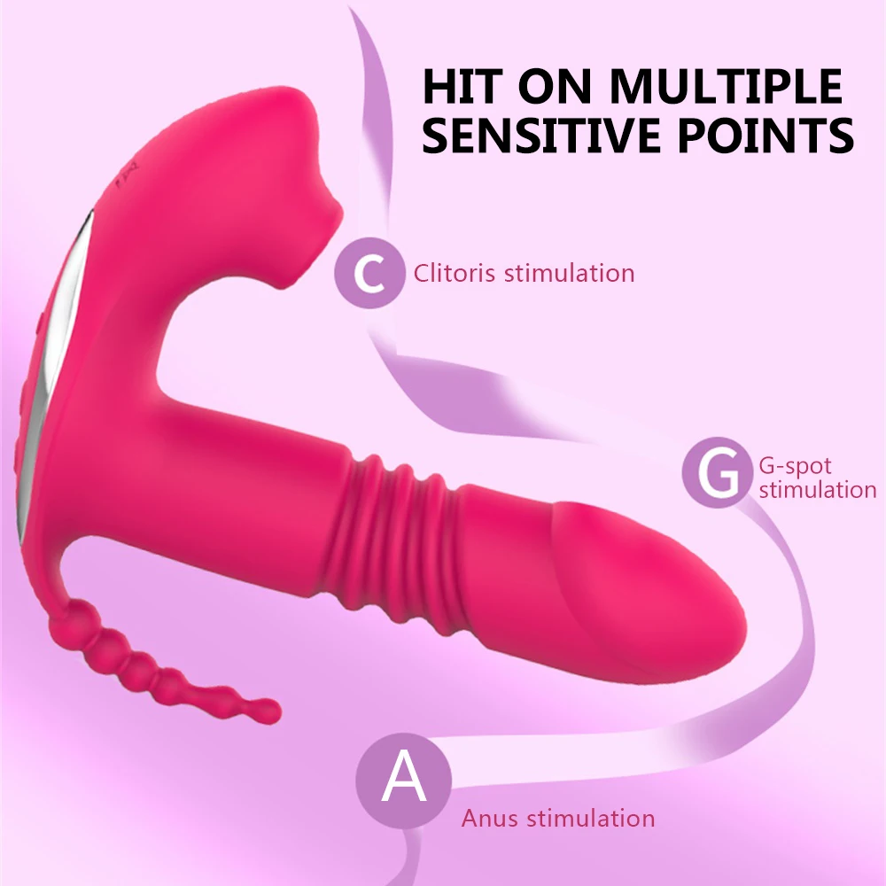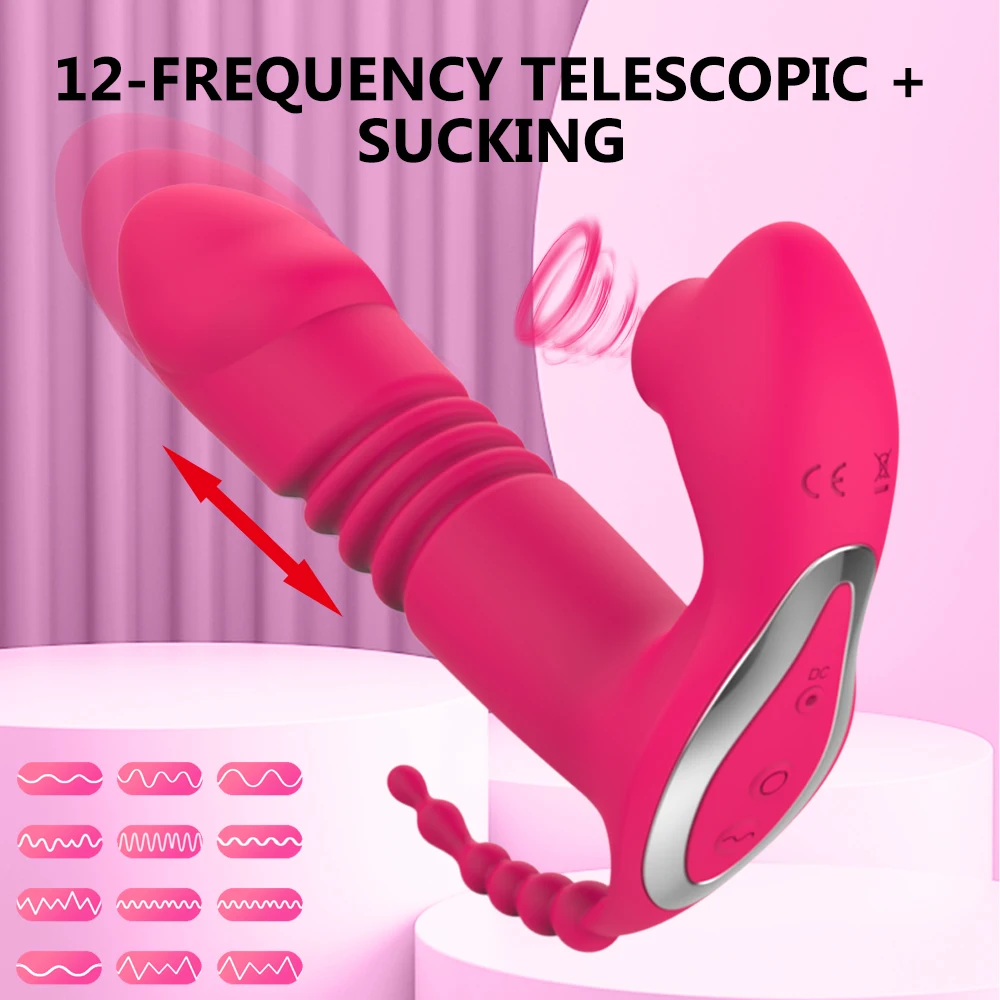 Sucking Clitoris Vibrator Women 3 In 1 Telescopic Wireless Control Clit Sucker 12 Speeds Female Wearable G-Spot Anal Stimulator