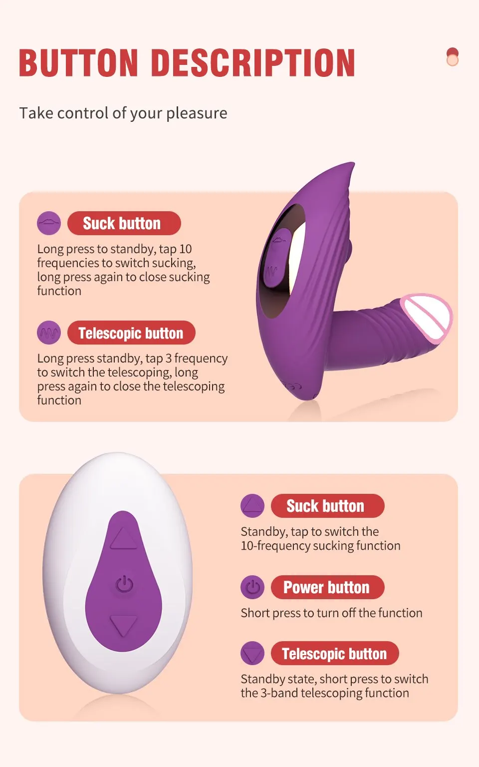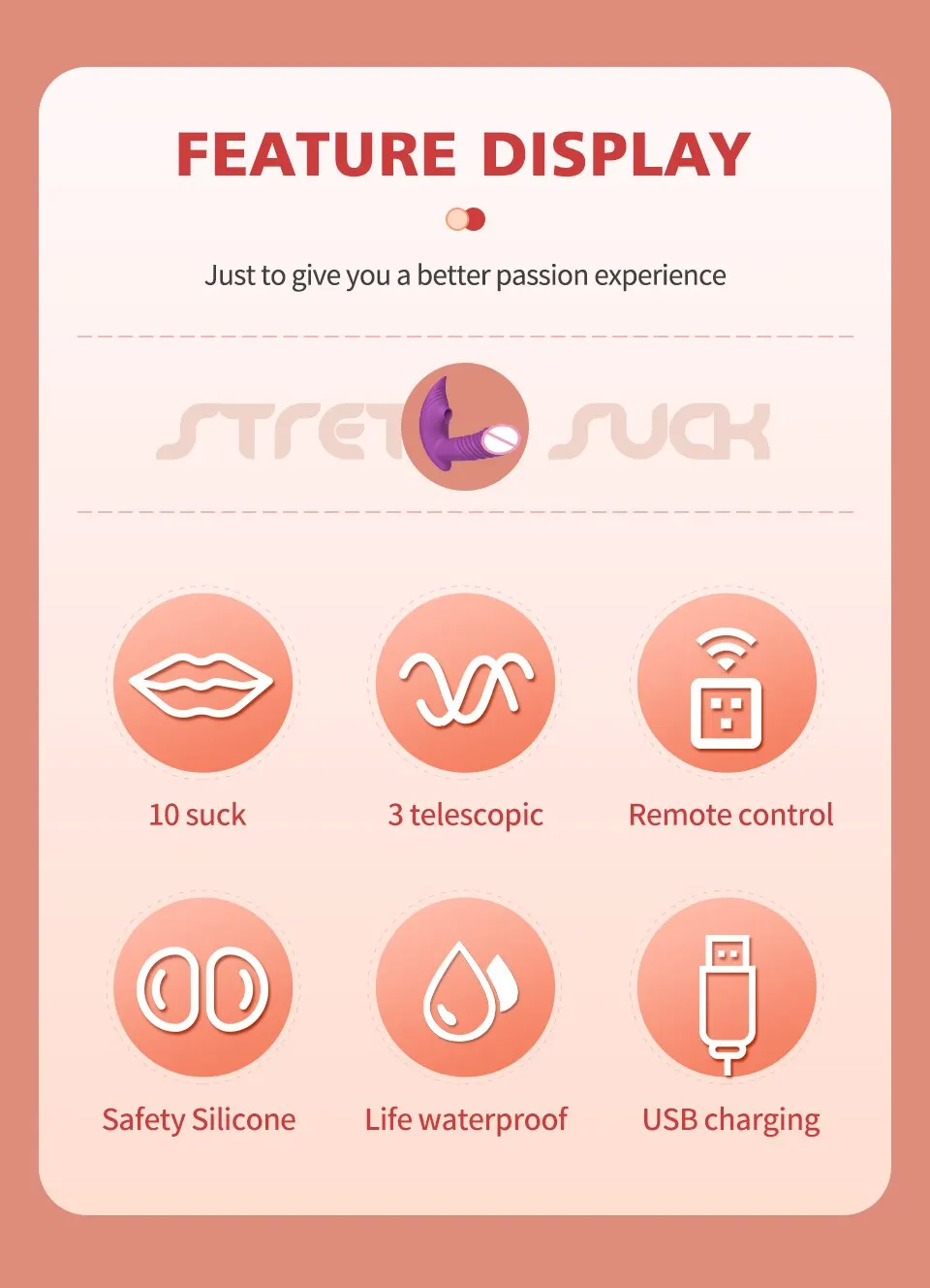 Features:10 air-pulse modes, 3 telescopic modes, Wireless remote control
